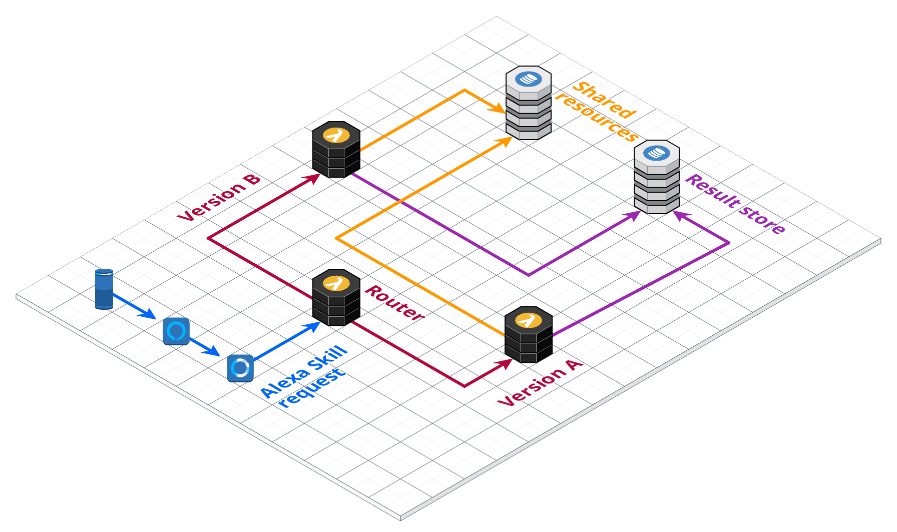 This project is a proof-of-concept (POC) for an A/B-testing architecture for Alexa Skills. There's a Medium article that describes the background and architecture of this POC in greater detail, whereas this repository serves more as a blueprint for how to set up the system for yourself.