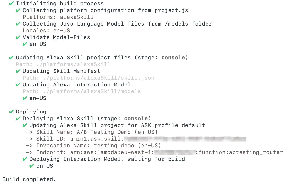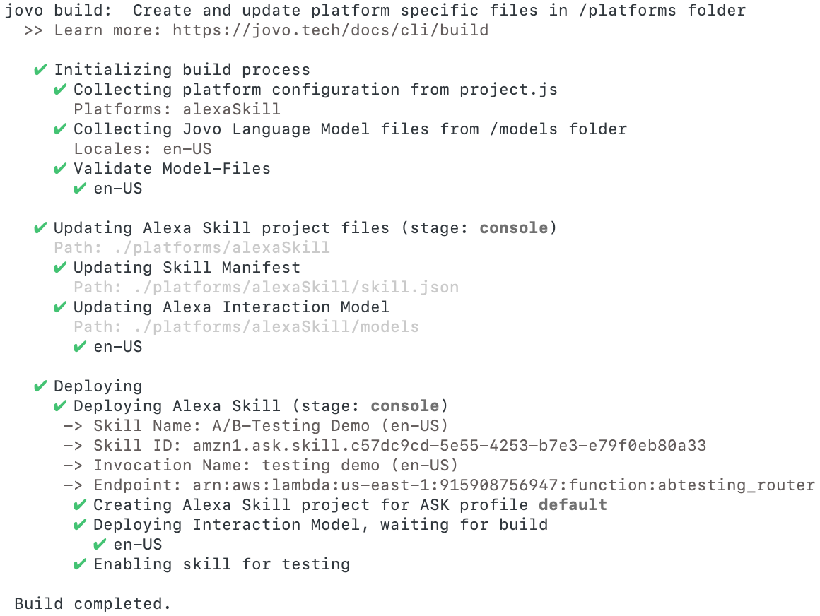 I personally see a huge potential for optimizing voice apps with A/B-testing, and hope that you can adapt this POC for your specific purposes. It's worth noting that while the Jovo framework and CLI are great for development and deployment, this system works just as well with any other framework or SDK that runs on Lambda.