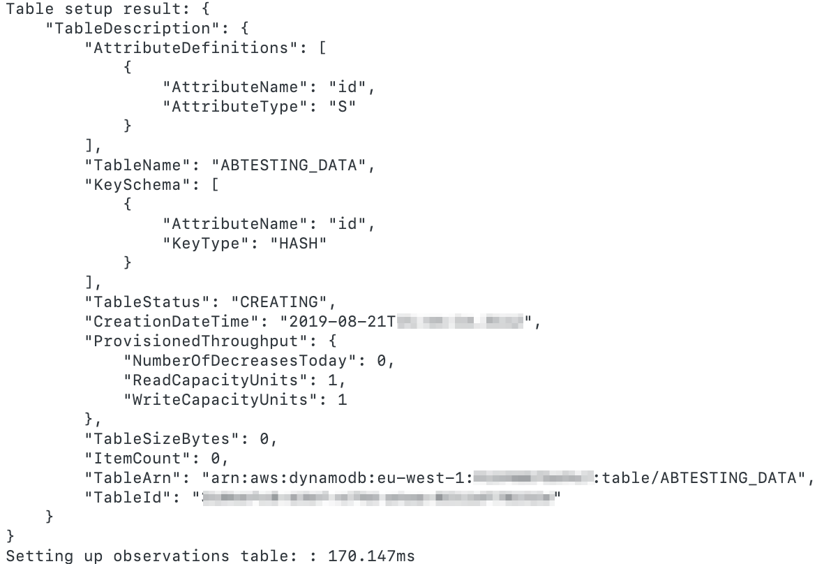 ABTESTING_DATA, your can change that in the value of the parameterDYNAMODB_TABLE_NAMEin your.envfile. Same with your AWS region and the parameterAWS_REGION. - If your AWS CLI user has the right IAM policies attached (you need at least