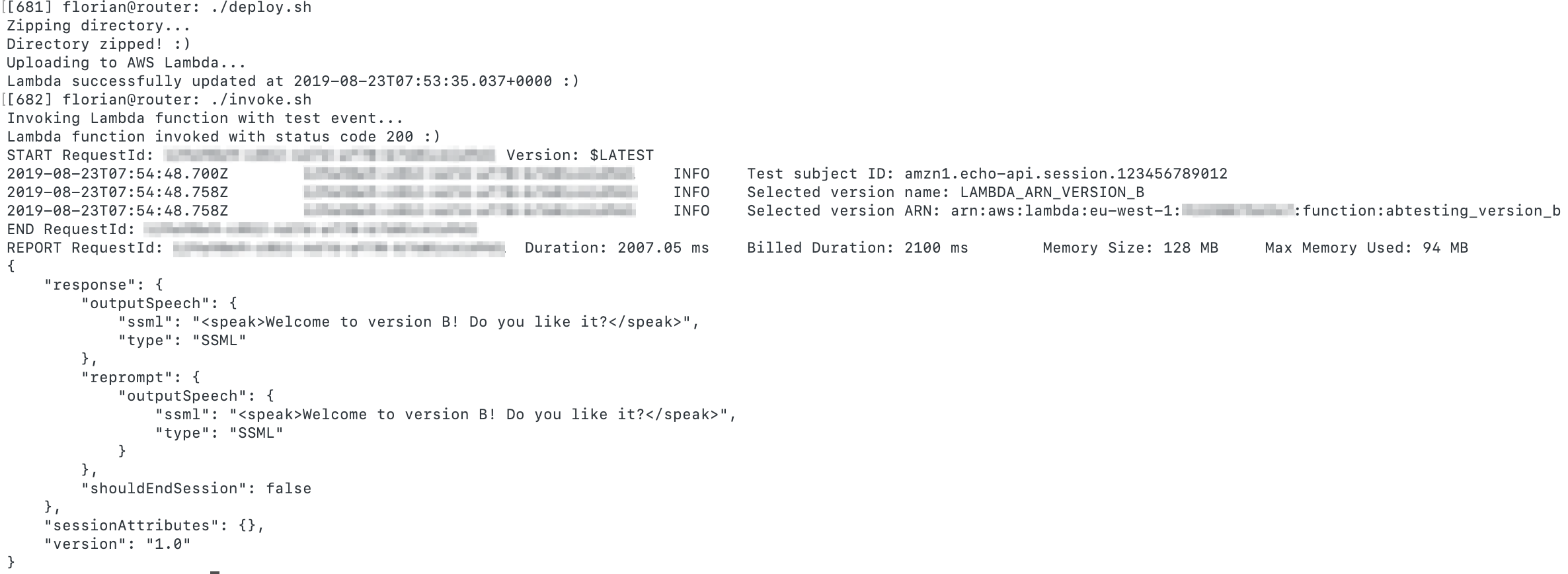 If you followed along, you should have gotten a functional POC for A/B-testing an Alexa Skill. If you ran into any issues during setup, please let me know!