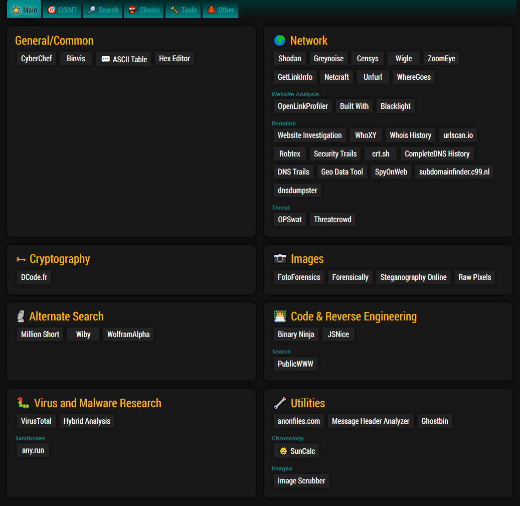 My intention was to make this as self-reliant as possible. Yes, the bulk of this is external links -- a glorified bookmark panel. But if there's a way to make a small tool self-hosted, I'll do it. (The reverse shell tool, for instance. Or the absurd ASCII chart.)