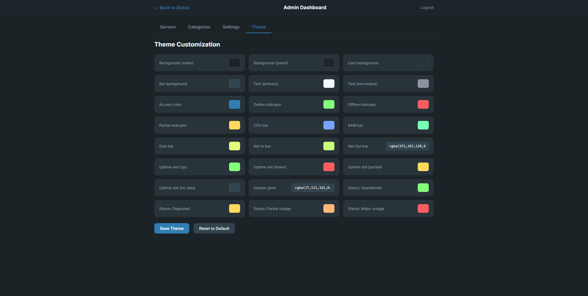 - Admin panel β Easily accessible interface to add, edit and remove servers