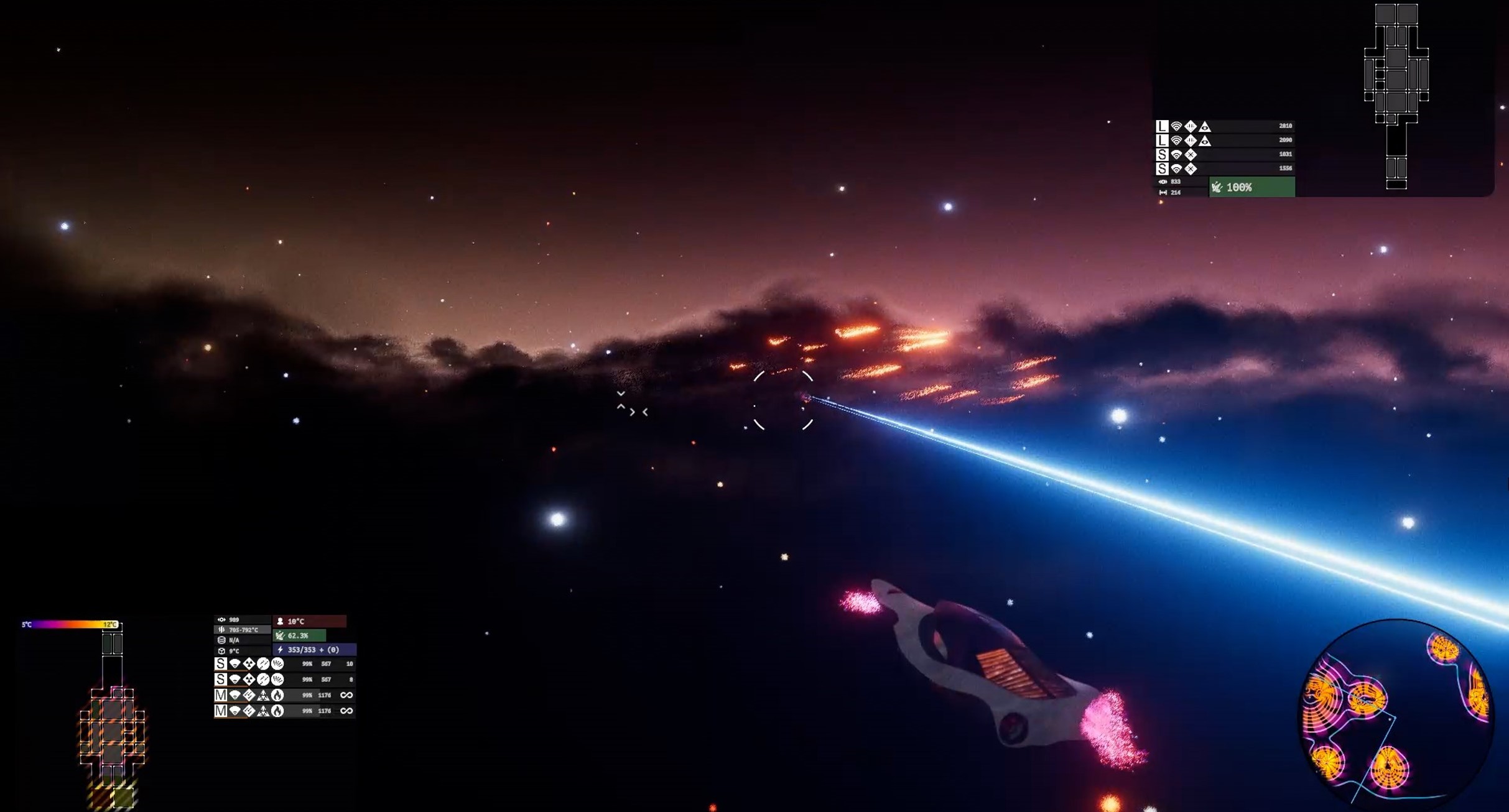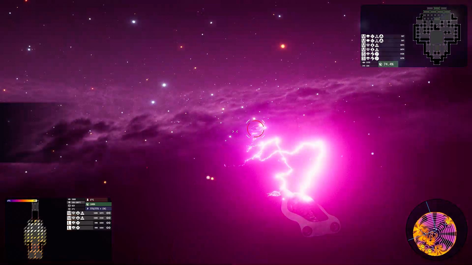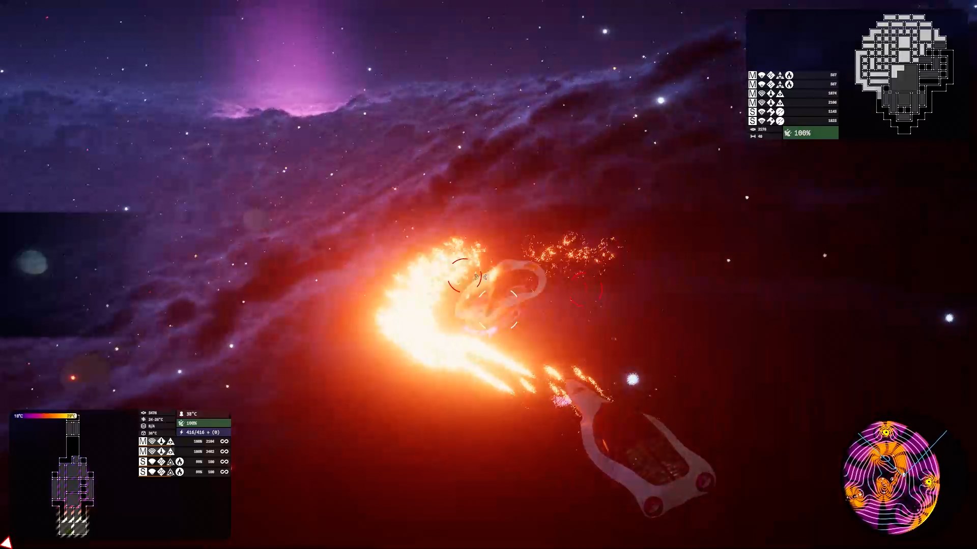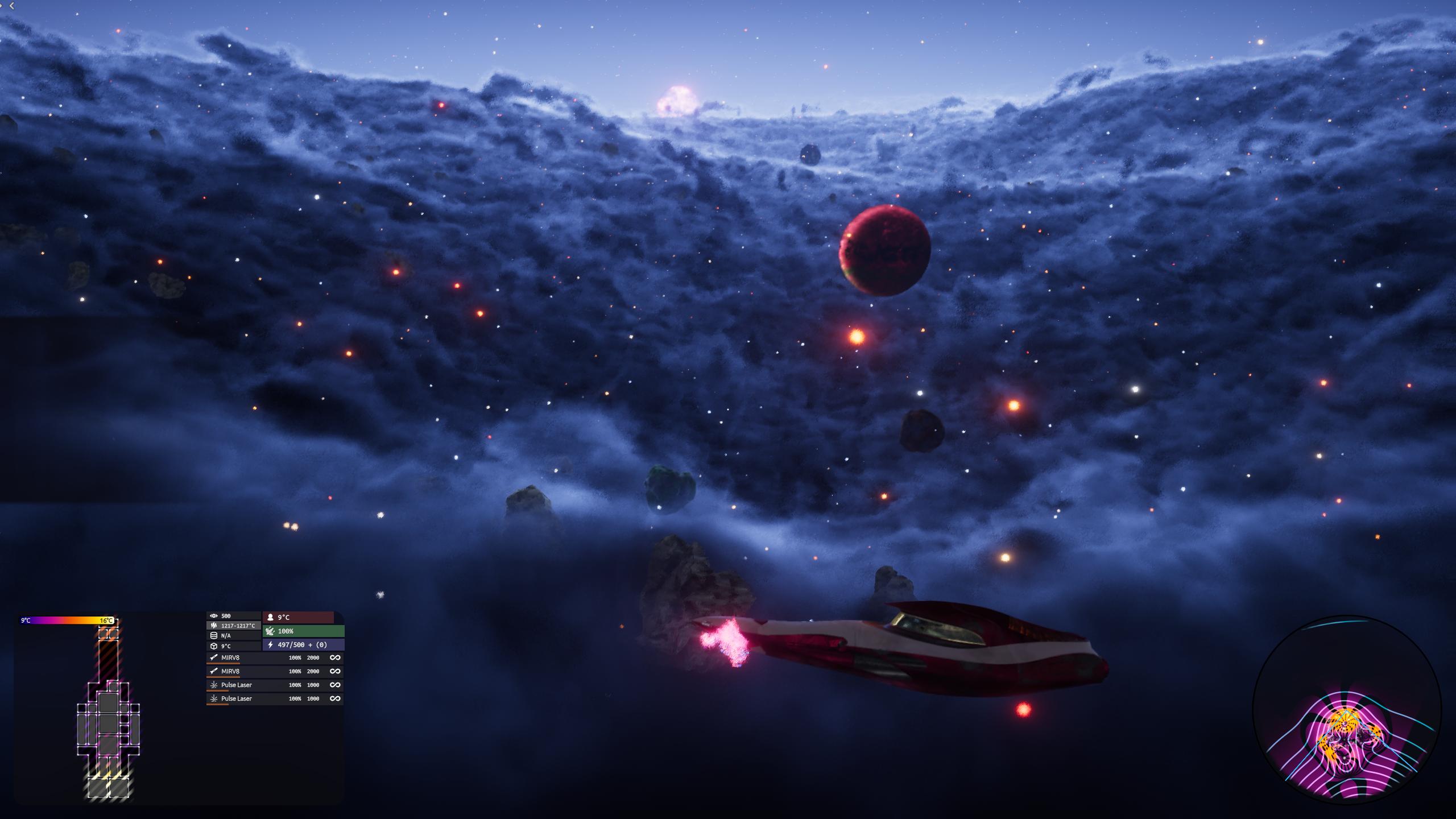 The concept for Aetheria goes back many years, during which I have steadily acquired my current skill with the primary objective of becoming competent enough to realize my vision. Previously I have built prototypes of the ARPG gameplay, here's a video of the most recent one. While it included stations, AI opponents, multiple ships and a complex loadout system which simulates heat transfer between all of the ship's hardpoints with temperature affecting the performance of each item differently, the world was rather static and empty.