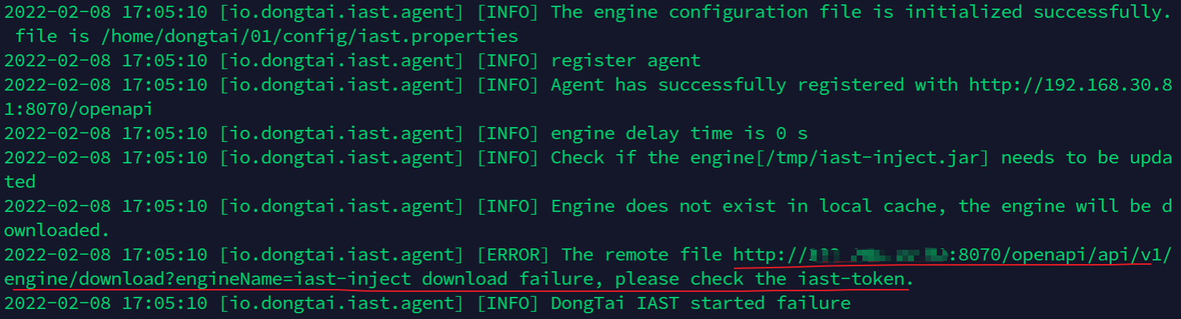 启动agent报错:...download failure, please check the iast-token #419