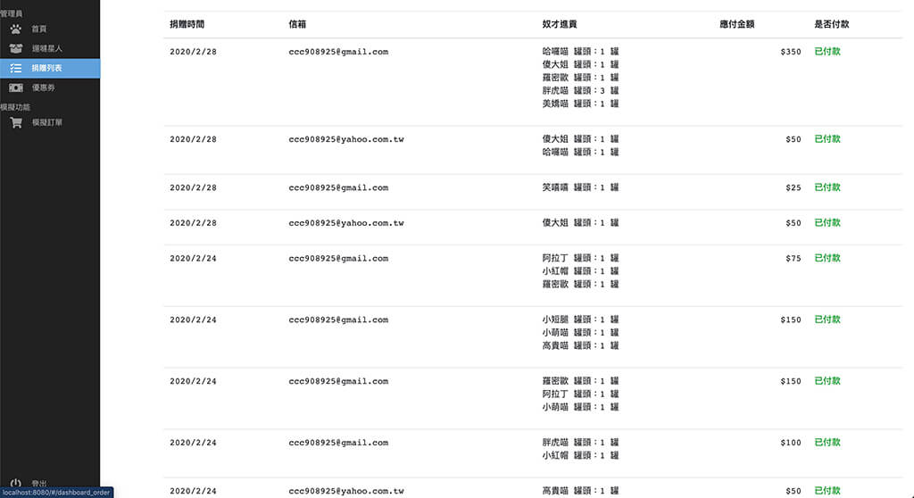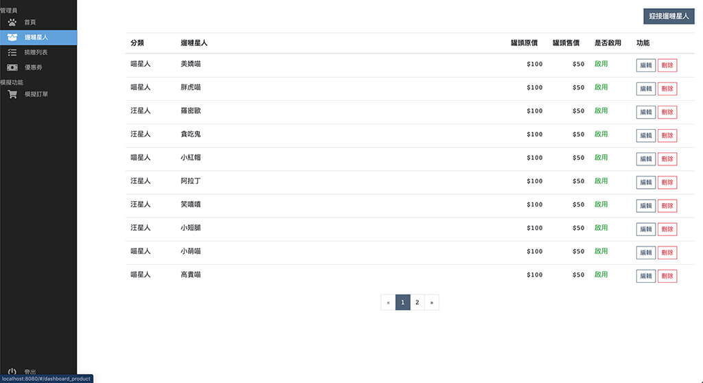 使用 Vue CLI 4 + Vuex 所製作,僅限前端開發練習展示用。