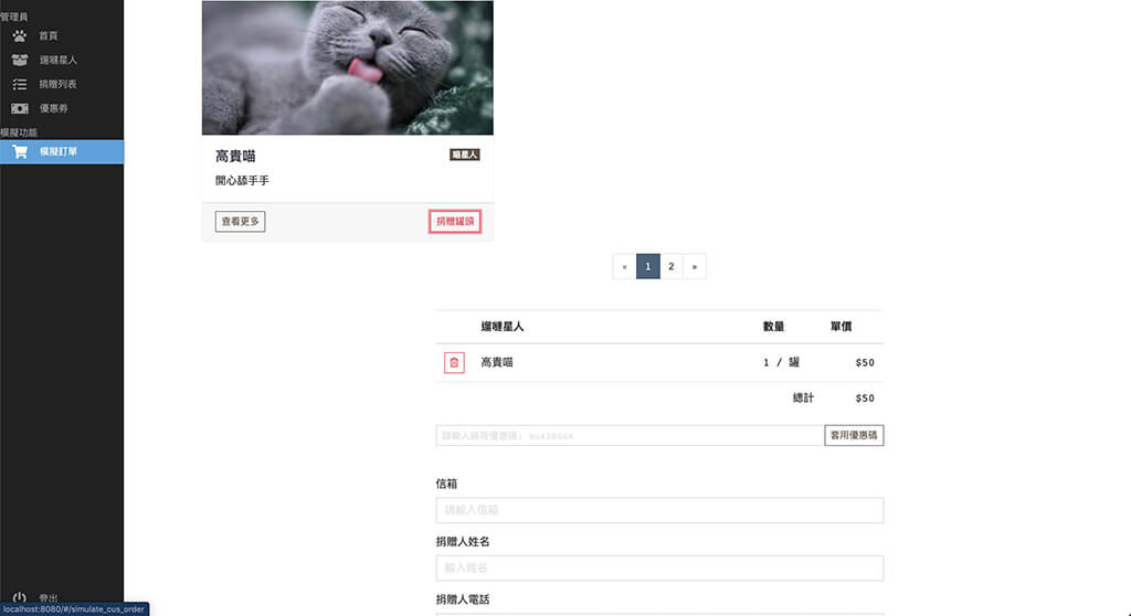 - 捐贈罐頭後點選購物車,完成後續結帳流程。