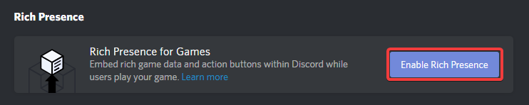 Create Appfirst or you won't see theEnable Rich Presencebutton!