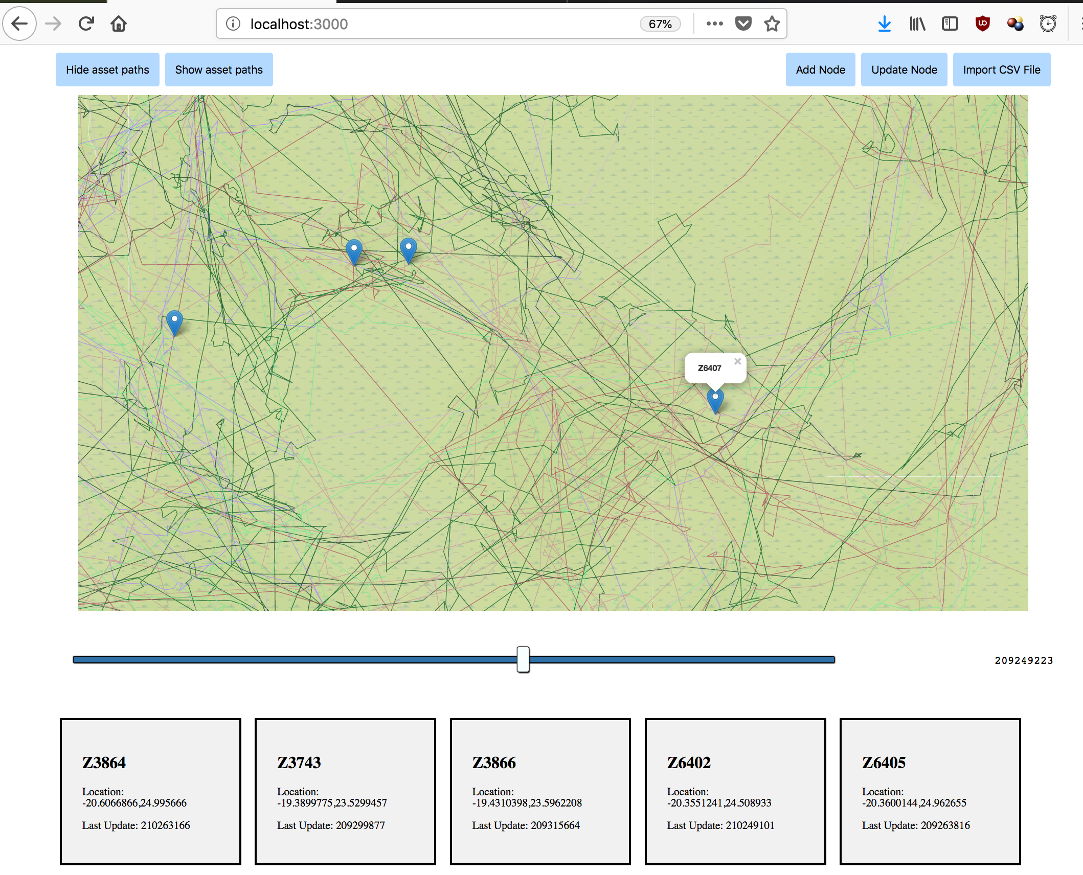 We can also click the "Show all paths" button to draw the path traversed by each asset.