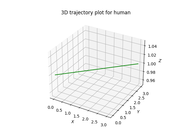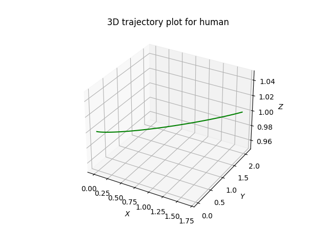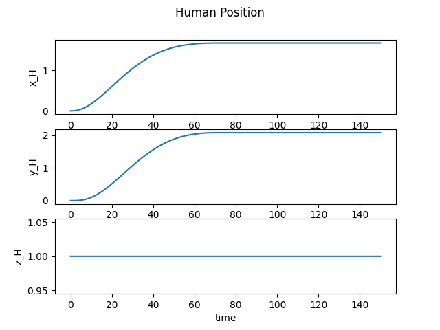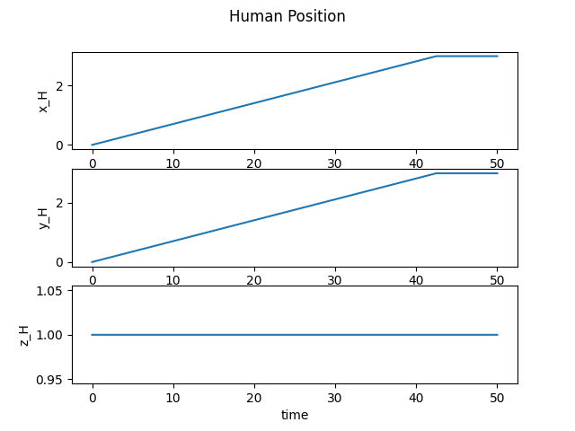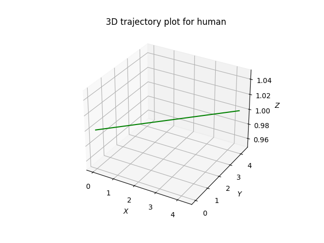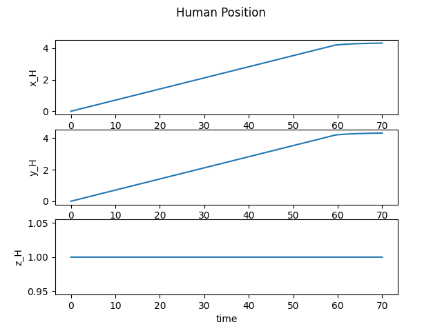 - Human and drone have the same velocity and follow a constant velocity trajectory