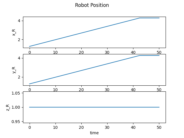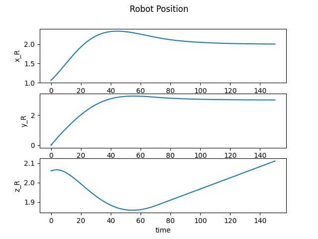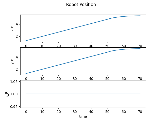 - For initial 50 seconds, it is assumed that the product of proportional gain and error in robot position is large and considered to be constant. For the rest of simulation time the steady state approach assumptions are taken into account.