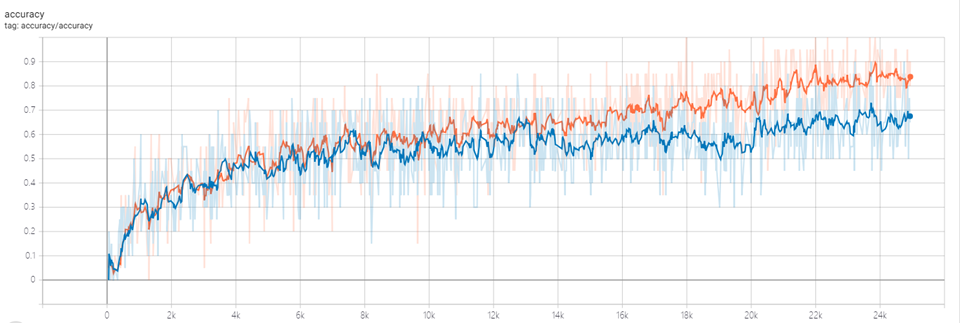 目前模型训练集准确度83.8%,测试集准确度67.5%,仍有待提高。。