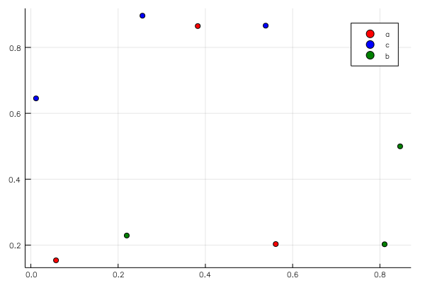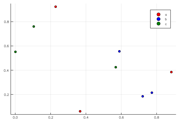 scatter(rand(9), rand(9), primary=false, color=repeat(vec(c), 3))