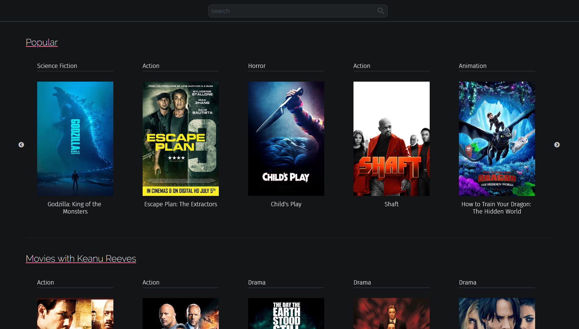Web app created for browsing movies. All of the data is pulled from The Movie Database by the API that is handled on an express server. React works with express after being deployed to Heroku.
