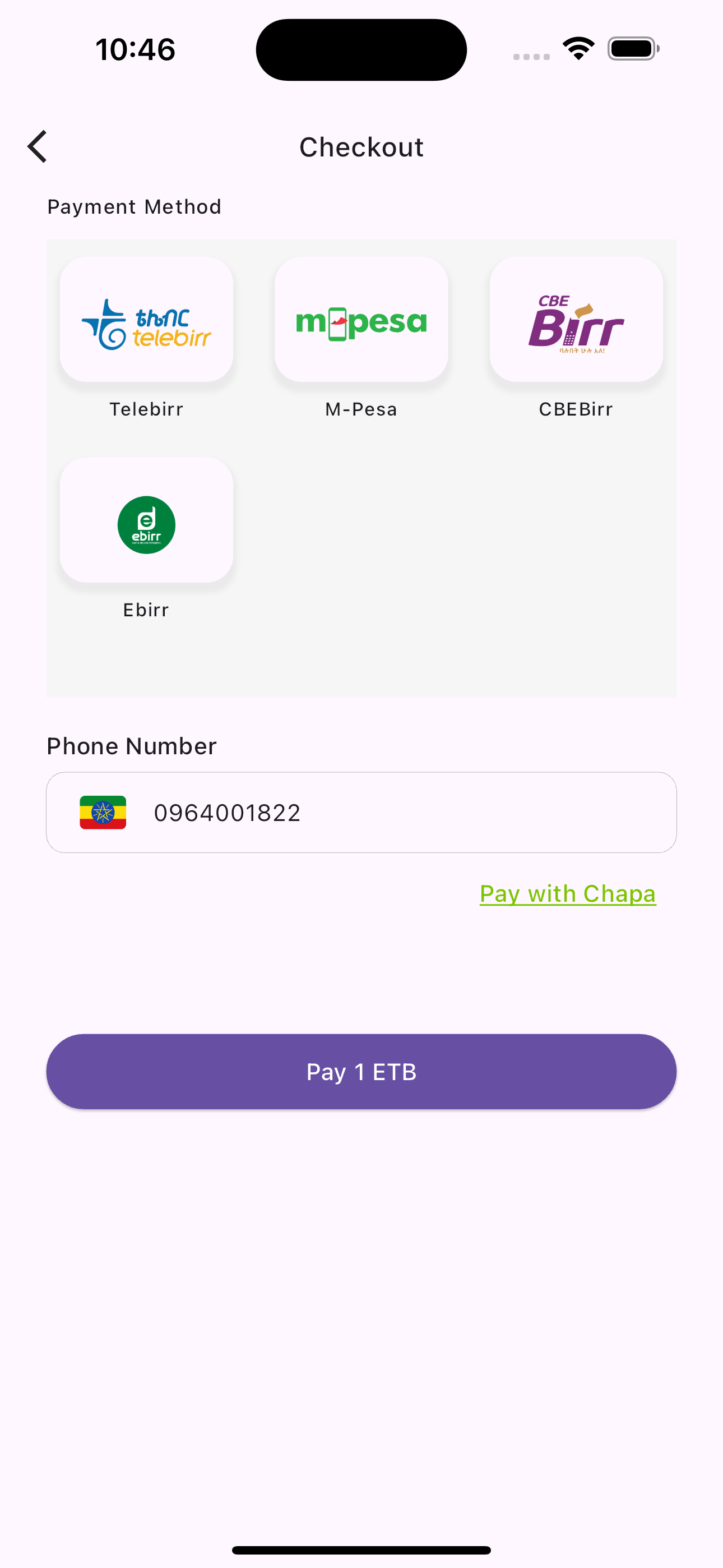 availablePaymentMethods: ['mpesa', 'cbebirr', 'telebirr', 'ebirr'],