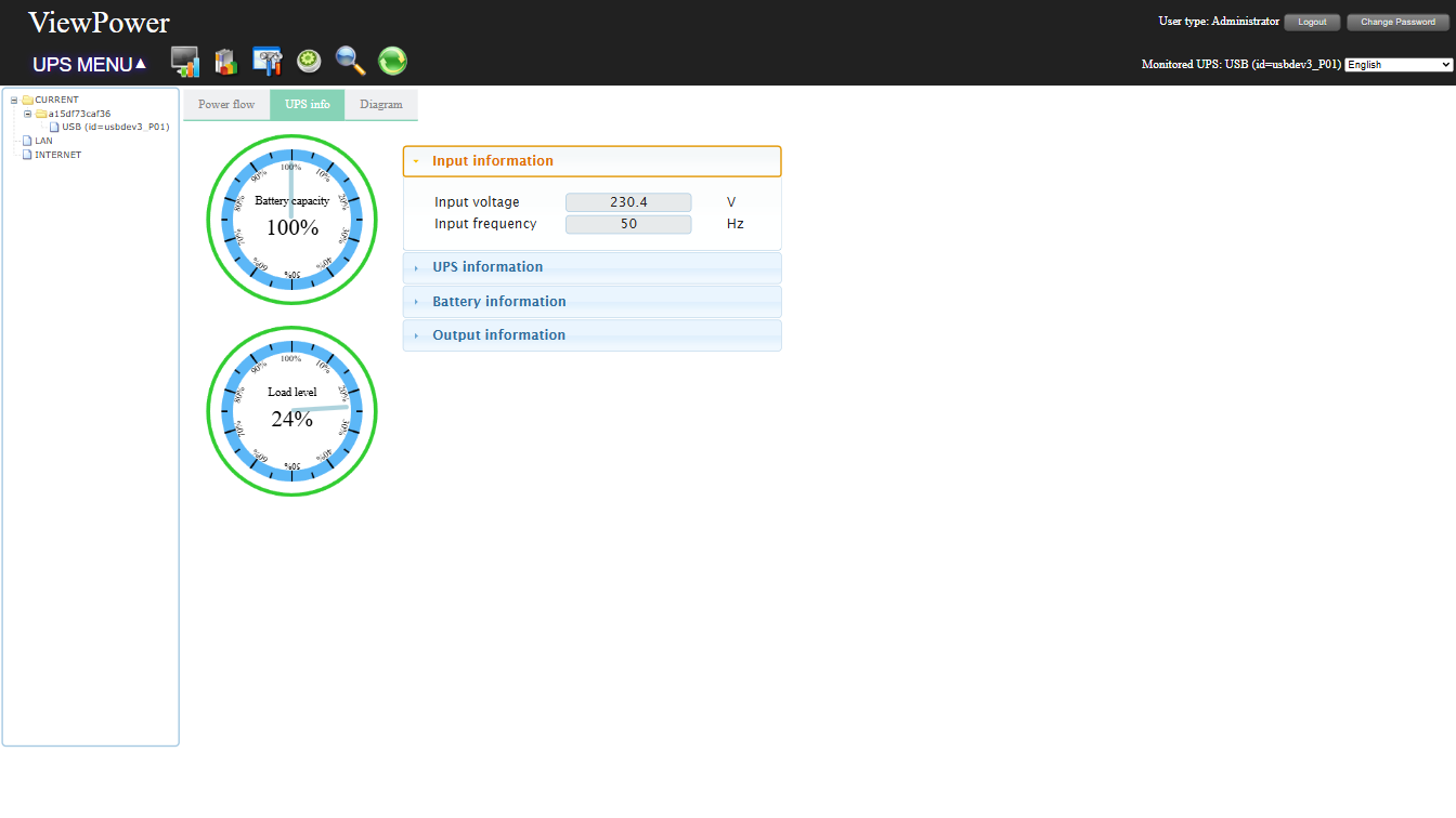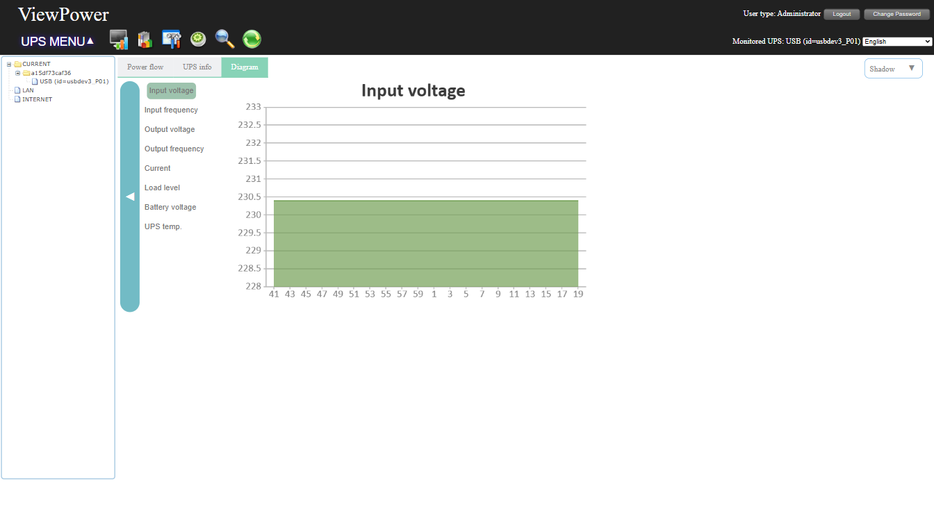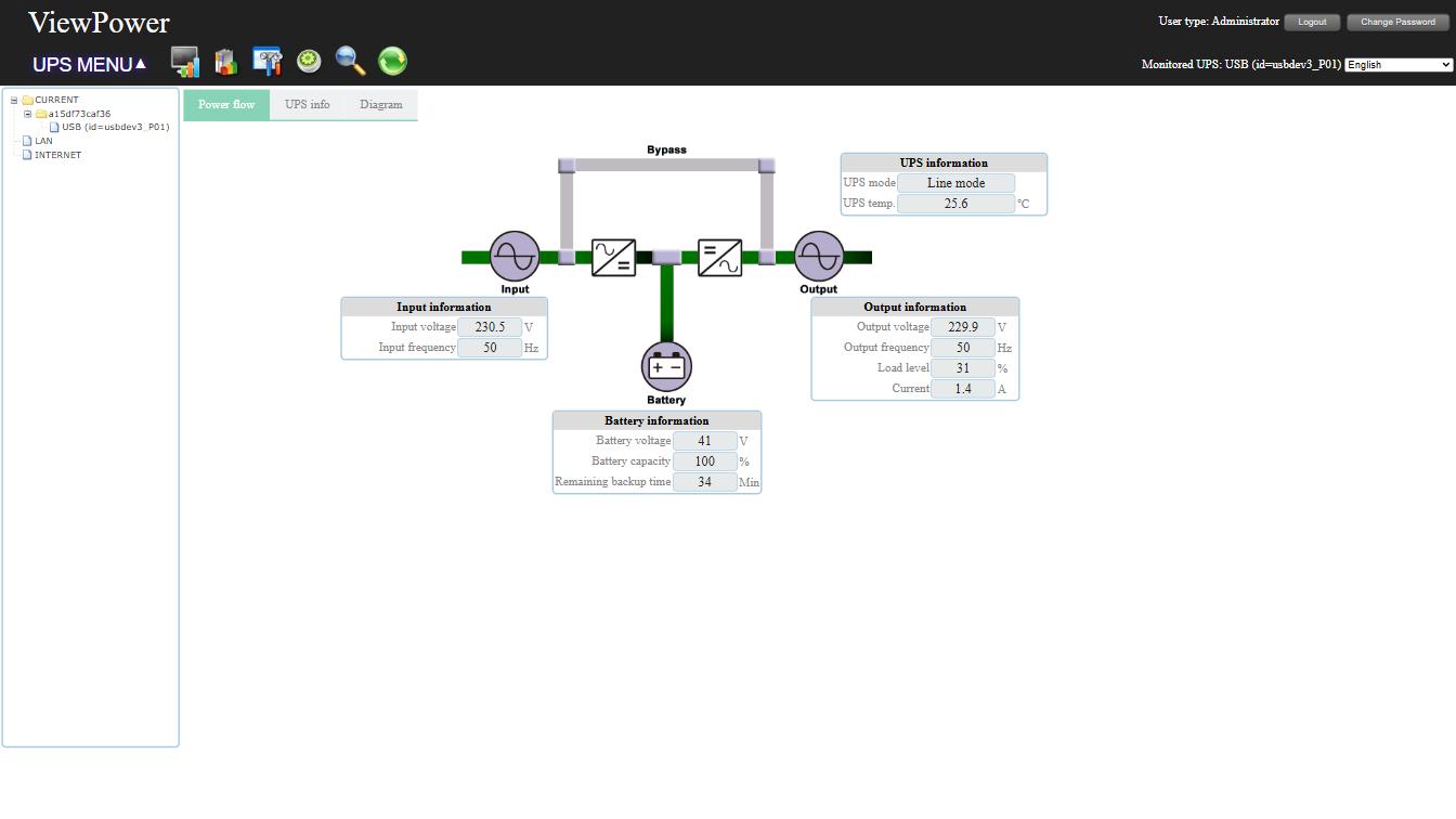 - Real-time UPS status graphs (voltage, frequency, load, battery level)