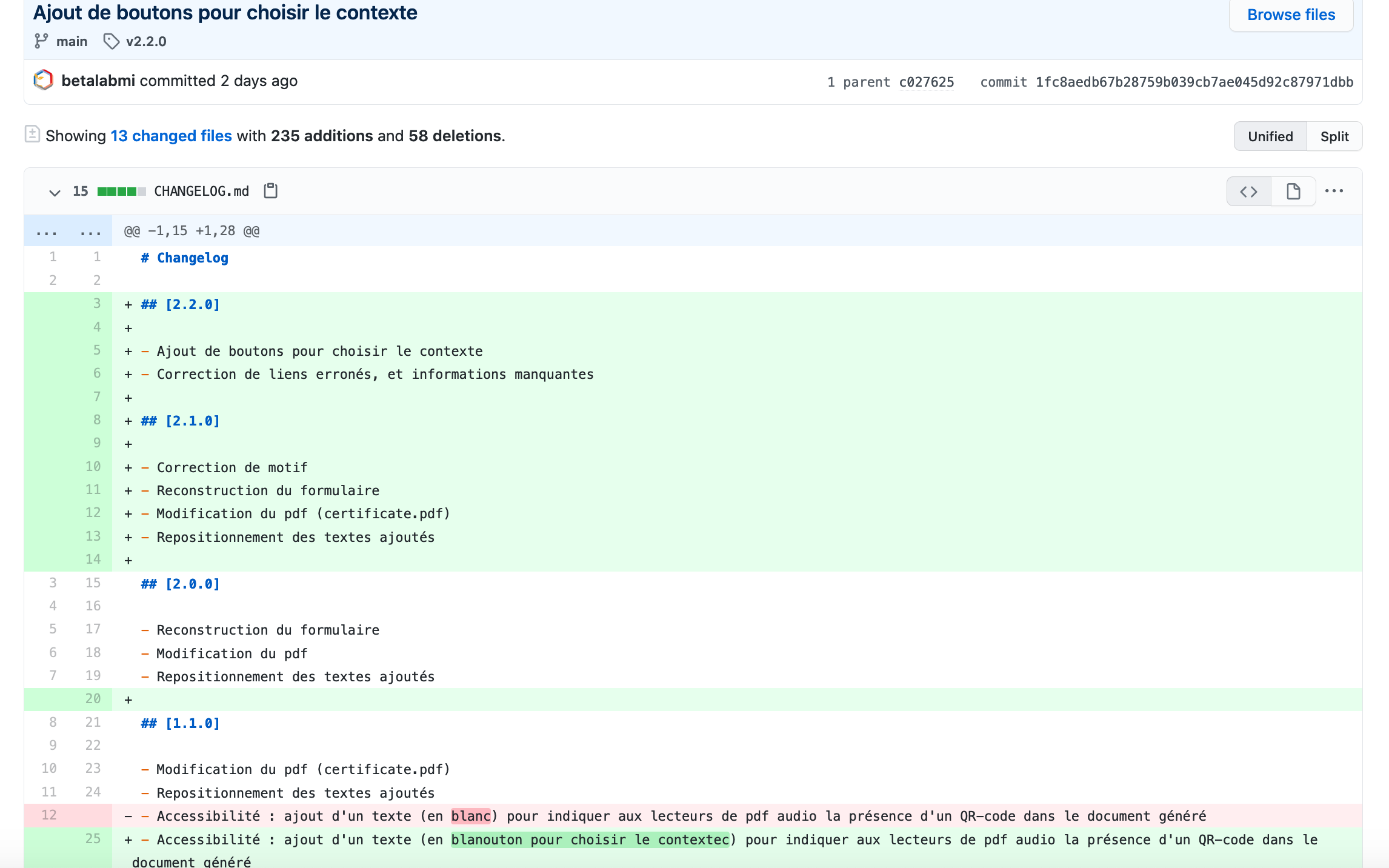 - Accessibilité : ajout d'un texte (en blanouton pour choisir le contextec) pour indiquer aux lecteurs de pdf audio la présence d'un QR-code dans le document généré