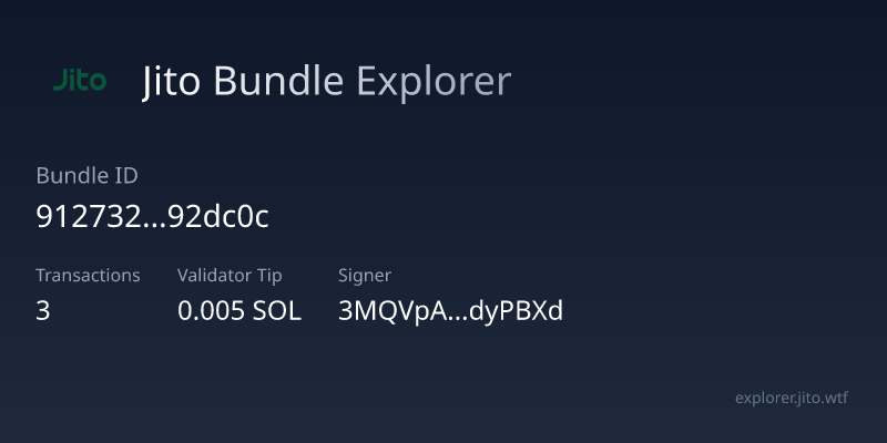 Stealth Mode Meteora Bundler: Bypassing Bubblemaps Tx Examples https://explorer.jito.wtf/bundle/9127327465c536488a2e3882a00a8505013dac2c69a189c1173cf9530192dc0c Token Creation: https://solscan.io/tx/zEXn77TwLUMTwiu9krAojVpbCumT8P7VSt9nudLwWSo7FNwdEmnU6TSp1ZmS9jWdVTbY5EV42wjNG2EvEzx6YY9 Jito Fee: https://solscan.io/tx/3bVoftoWW616Ja5ahKh8vyYZxv4qQVcRPARP4xZryEpzB6bKPVAm1D9q3P8Miv88qhBYF8cDkHjq9yn7iHpEH9Mu Buy: https://solscan.io/tx/3nuzhEe3urT5CEnQQZZatWZ369uXDdatS6ha5ZLS4Rv9rTsPfyZot3EHYq4Ku5rGz7y7zksvVYgiLTBkszeFZuBp π Contact π¬ Get in Touch