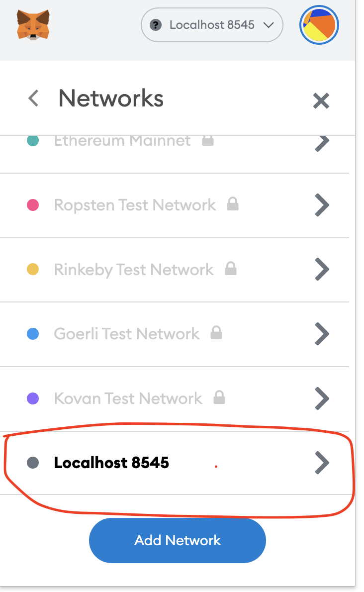 Injected Provider - Metamask, make sure that the account connected is the one that you imported above and the network isLocalhost 8545on your MetaMask -