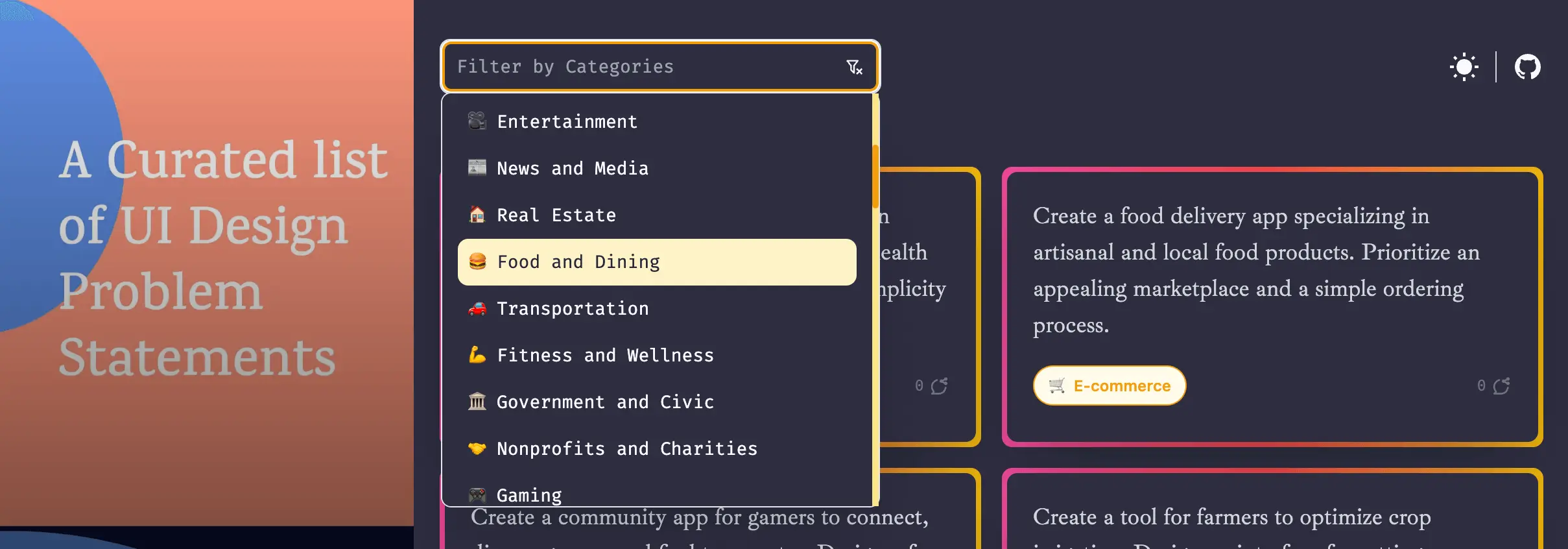 Alternatively you can join the community and add more Design Sample links. Head over to whatshouldidesign.space, select a category and click on any problem statement. Feel free to add a design sample link. At the moment we're supporting links from: