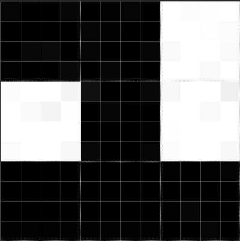 Each frame uses pixels in 4x4 size (1 pixel is a 16 pixel block). RGB values are used to represent bit values. So what the program does is translating the bytes (8 bits = 1 byte) of a file to bits represented in pixels. 0 value bit = black -> RGBA32(0,0,0,255) and 1 value bit = white -> RGBA32(255,255,255,255). RGBA32(red, green, blue, alpha). In v0.2.0 the EOF (end of file) is marked as a blue pixel on the last frame RGBA32(0,0,255,255). v0.2.2+ has a metadata first frame which stores the EOF (uint32) and the original filename after a magic number (ISGv2). No blue pixel anymore. The output resolution is 1280x720 (720p).