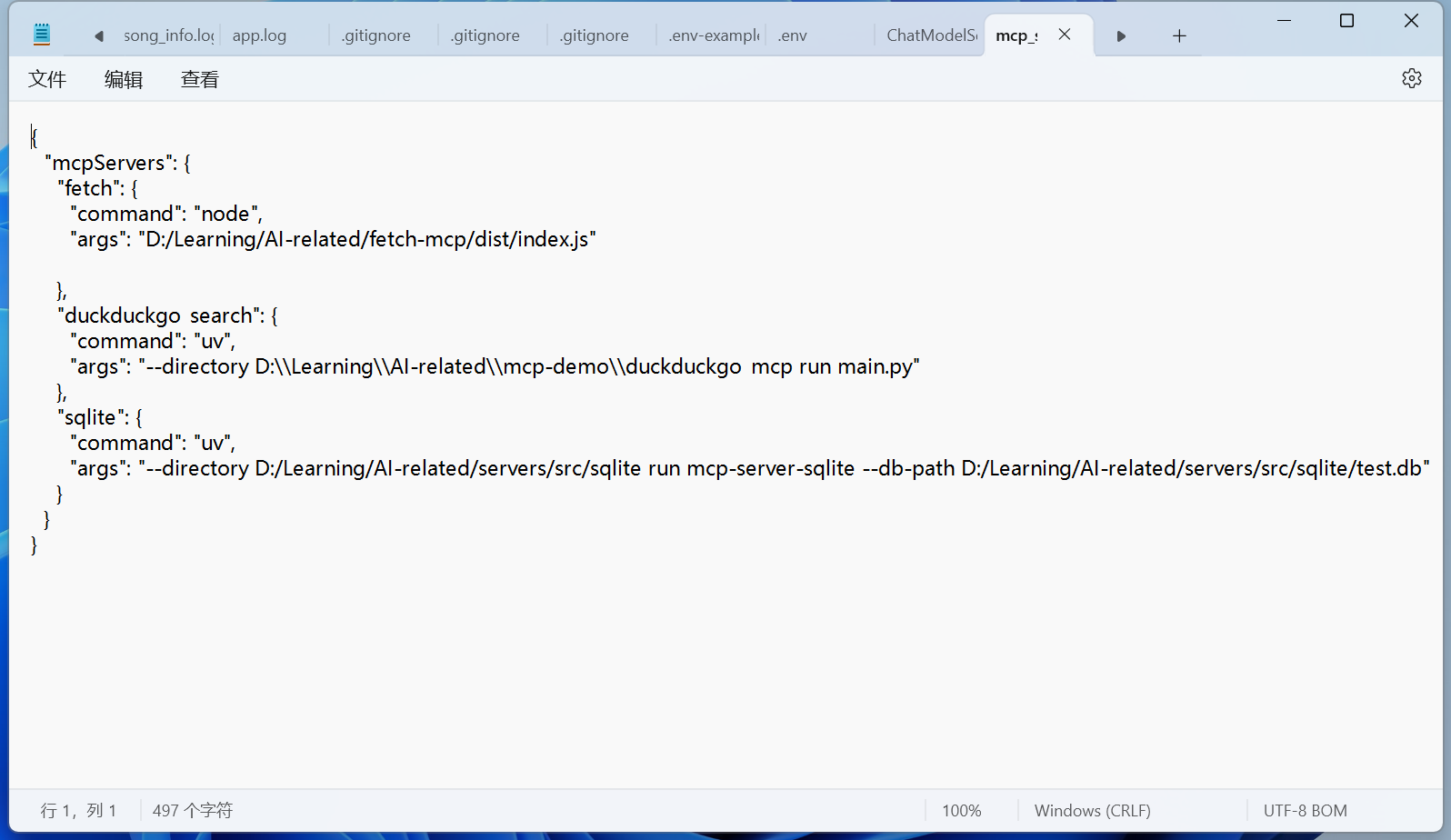 Open mcp_settings.json to configure your MCP server, my example is as follows: