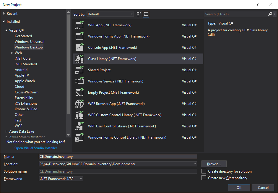 Setup a new .NET Framework class library project named CE.Domain.Inventory (though you may use whatever you wish).