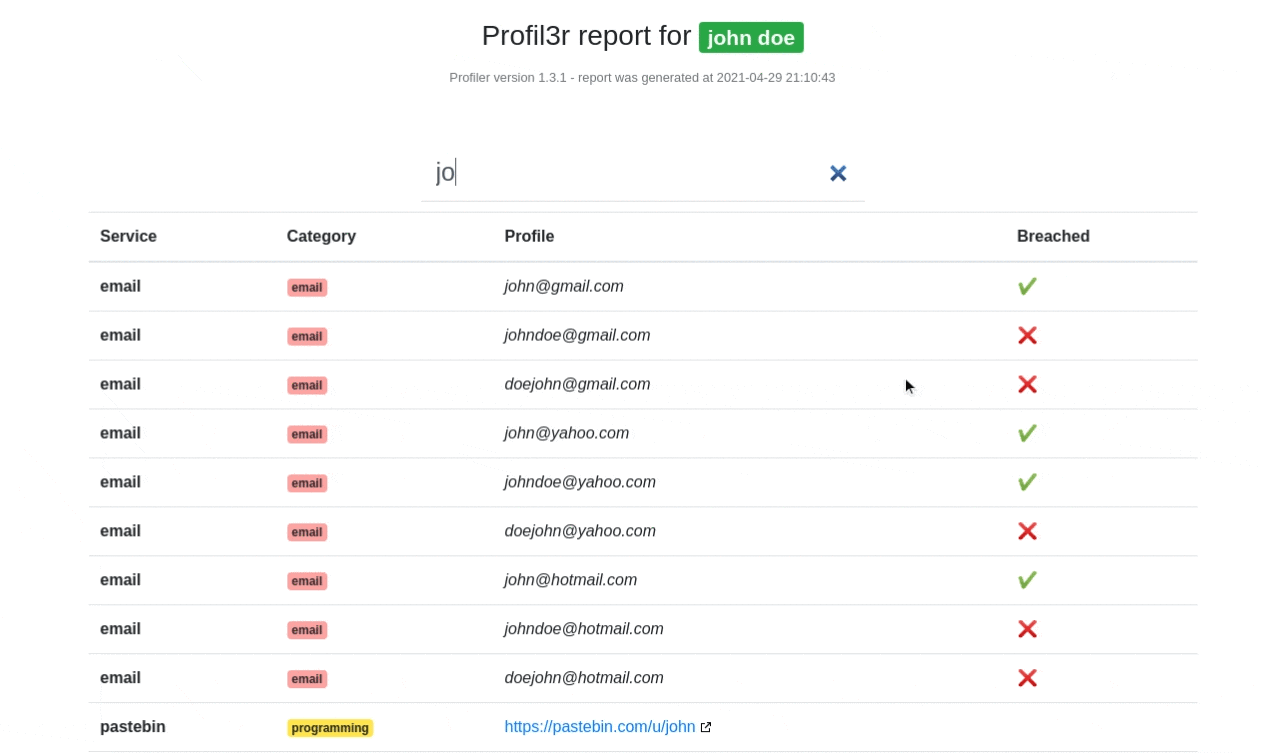 python3 profil3r.py -p john doeThis project is under the MIT license.