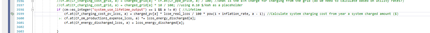 Travis seems to be having trouble with the tests, and I'm also having trouble locally: From PV_Phoeniz_all_on: I dug into this on Generic_w_PV_input_all_on and it looks like the error is in the LCOS calculations in common_financial: charged_pv only has length 1. batt_annual_charge_from_system appears to be empty. I'm not sure whether this means the test needs to change to ensure this value is reported or the code in the financial models needs to be more robust. This metric appears to work in the GUI. |