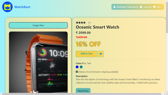 - Product Detail Page: Detailed information about individual smart watches, including title, description, and pricing.