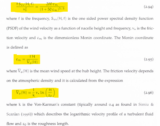I have a numerical model following the Staino et al. 2013 (for solving the edgewise and flapwaise blade displacements) and i am in the process of validating this model using openfast. I simulate the turbulence found in the wind using the following equations
