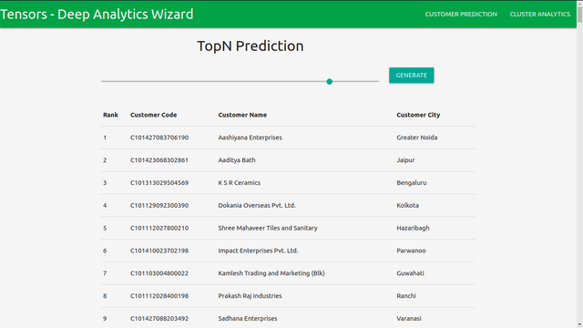 A glimpse at the functioning Top Customer Prediction portal - The customisable slider on the top allows the user to adjust size of the target audience.