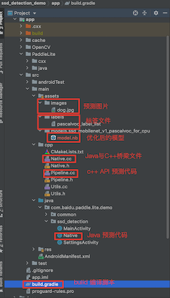 picodet_detection_demo/app/src/main/java/com/baidu/paddle/lite/demo/object_detection/Native.javaNative.cc: Jni 预测代码用于 Java 与 C++ 语言传递信息