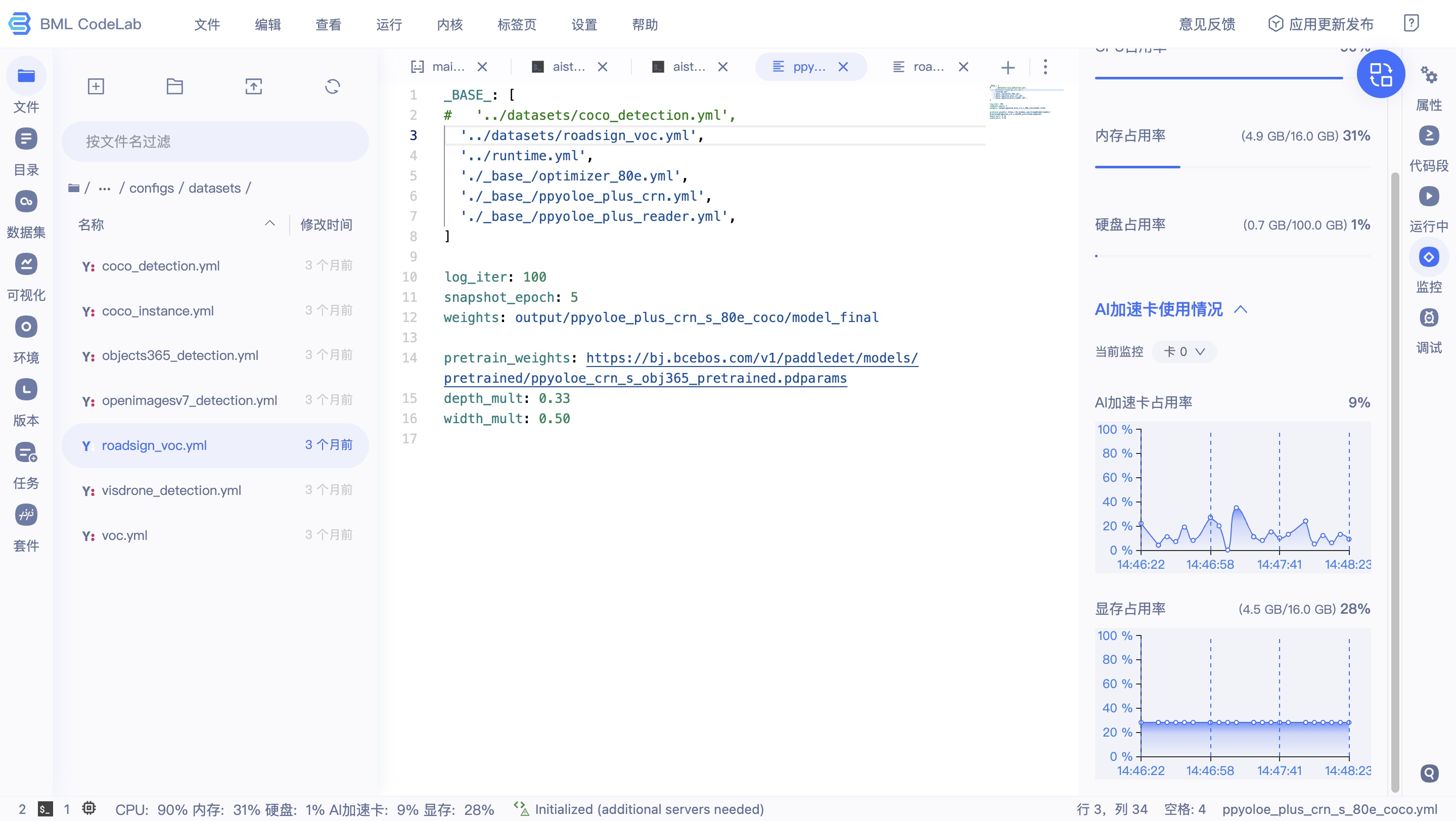 我的一点修改:使用roadsign_voc数据集,因为默认下载coco数据太大了,而且ai studio里的下载速度很慢。