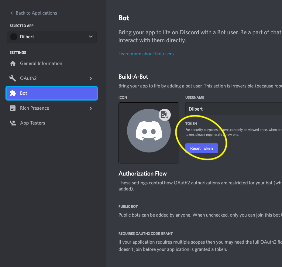 - Then, under bot obtain your token.