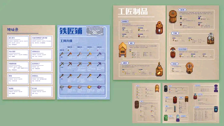 等终于不懂经历了多少次期末(每次都喊着考完这轮就回去星露谷种田,但最后都未能如愿以偿)终于能快乐回归星露谷时,我发现了一个问题……有太多必要信息需要摘抄了,重点是我的字很丑,所以就想:为什么不干脆整理好了之后打印出来呢?——>既然要打印,为什么我不重新设计排版成我喜欢的样子呢?