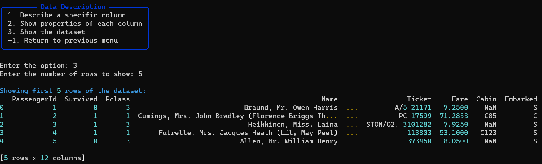 - View dataset statistics, null value counts, and perform data imputation.