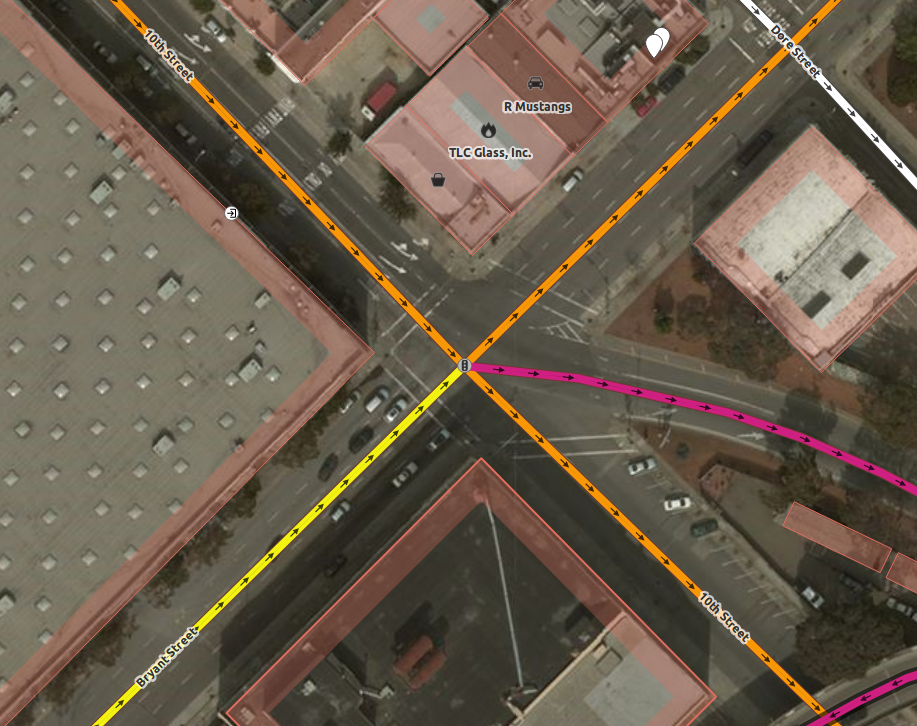At intersections like this one ^ if a route does not involve making a left onto Bryant, we should issue a continue straight instruction, otherwise it is easy to fall into the trap of being forced into a left turn.
