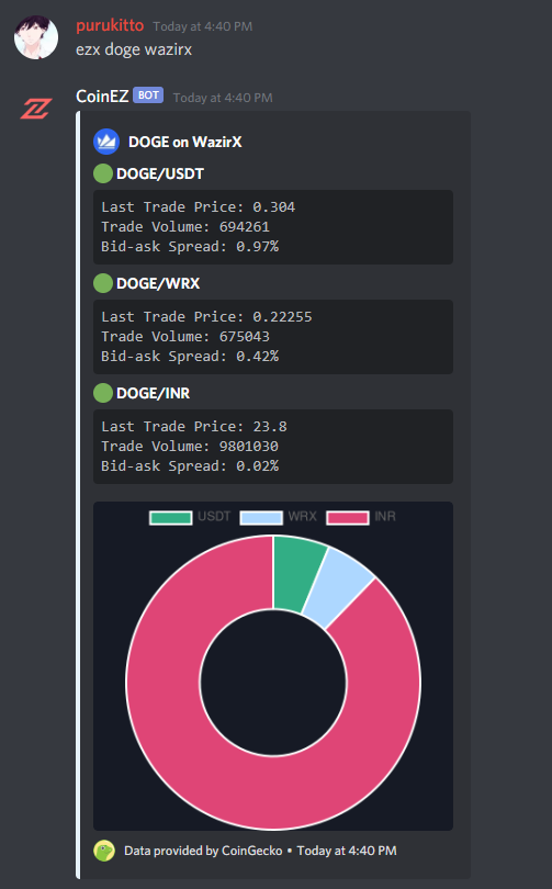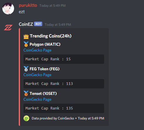 CoinEZ is a discord bot to get cryptocurrency price, volume and market data of over 7000 publicly traded cryptocurrencies and more!