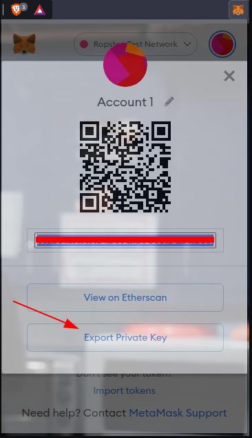 - Click in Export Private Key