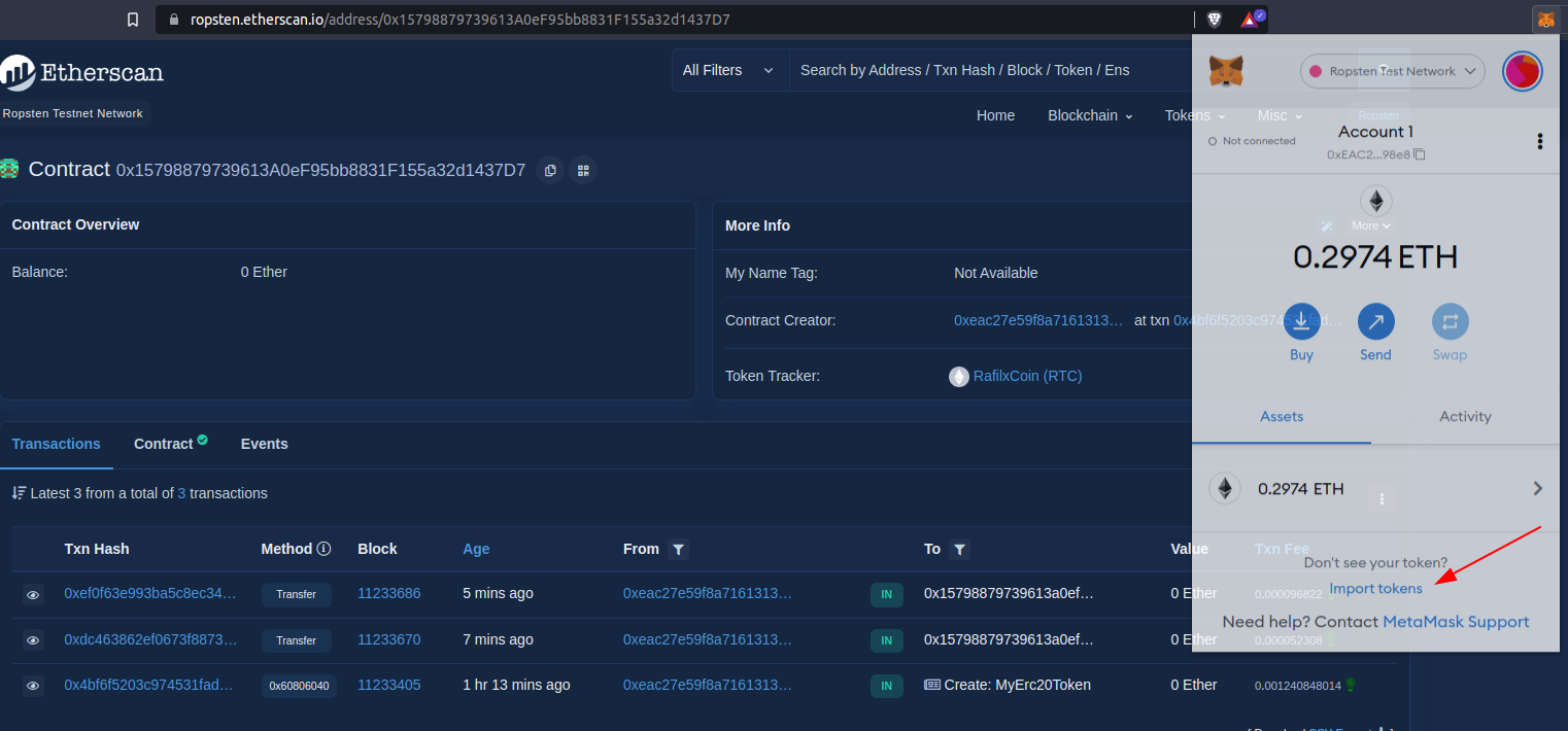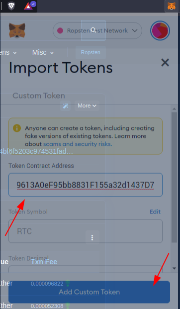 - Open the metamask extension and click Import Token