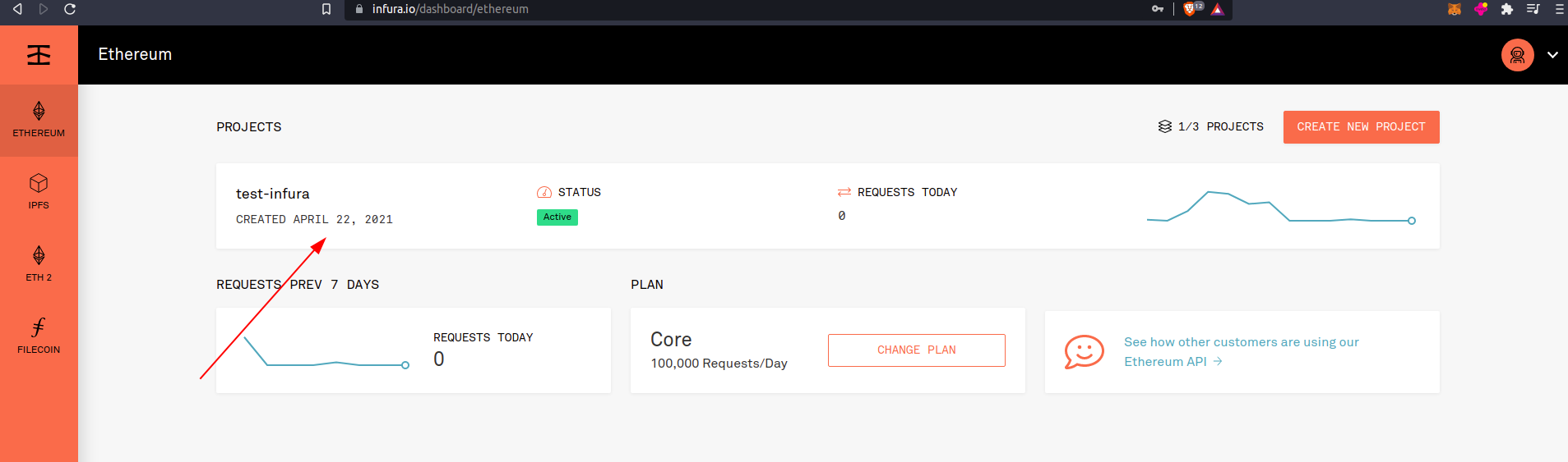 - Click on the first project if you have it, if not click on CREATE NEW PROJECT