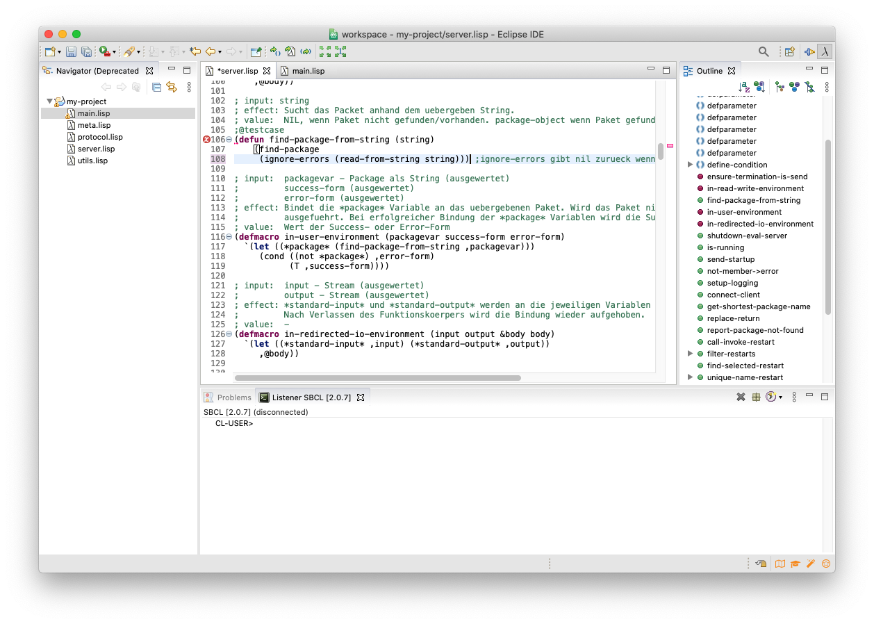 Dandelion is a plugin for Eclipse that supports Lisp programming in the Eclipse platform. It comes with two ready to use Lisp environments: SBCL and CLISP. It is possible to connect other environments.