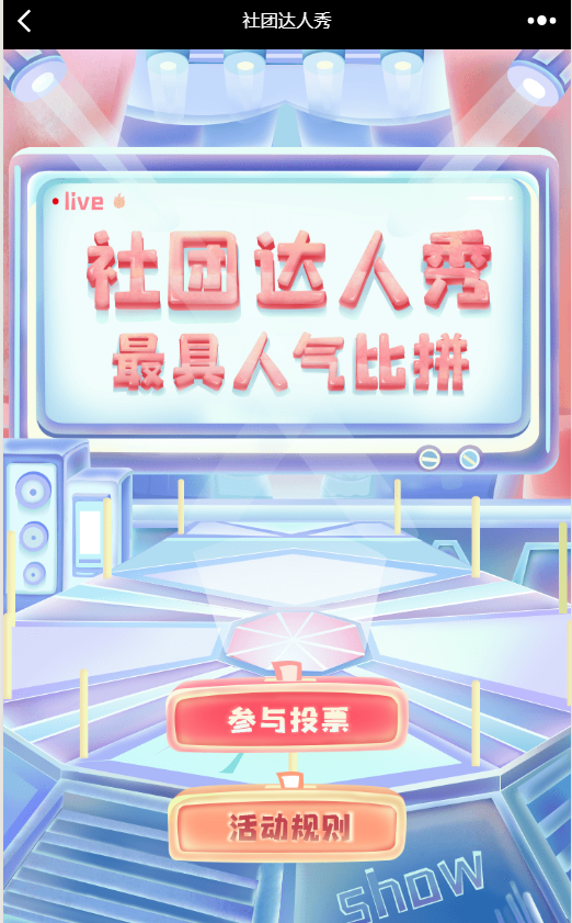 此项目为2019年社团达人秀的投票页面,运行于微信浏览器。于2019.11.28正式上线,总计上线时间为三天。