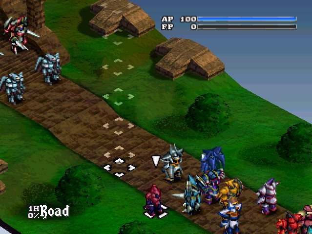 Vanguard Bandits (originally called Epica Stella in Japan) is a Tactical RPG developed by Human Entertainment and released in 1998 for PlayStation 1. Its story takes place on the continent of Eptina, in a middle ages themed era, where the war between the Junaris Empire and Pharastia Kingdom is currently happening. For a war in medieval times most people would probably imagine knights with sword and shield and armies fighting in melee combat. and they would probably be right, except for the fact that in Vanguard Bandits the swords and armor are not held nor worn by soldiers, but rather piloted by them.