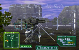 While at first glance Gungriffon might look like the Saturn version of "We've got Armored Core at home", I can assure you it's not like that at all. Even if both games are made by Japanese studios, Gungriffon plays and feel closer to the traditionally bulky European/US mecha games than the usual sleek and speedy Japanese games. Most often you will be thrown in a map full of enemy mechs, tanks, helicopters, and other nasties that just want to destroy you. Your first instinct would be to dive in, be the cool action guy; that would be a mistake, as you'd learn very quickly. Here, positioning and target prioritization are the keys to victory! For example, if you leave the air superiority to the enemy, you won't be able to call in a supply helicopter when you run out of ammo, and at that point, good luck staying alive...