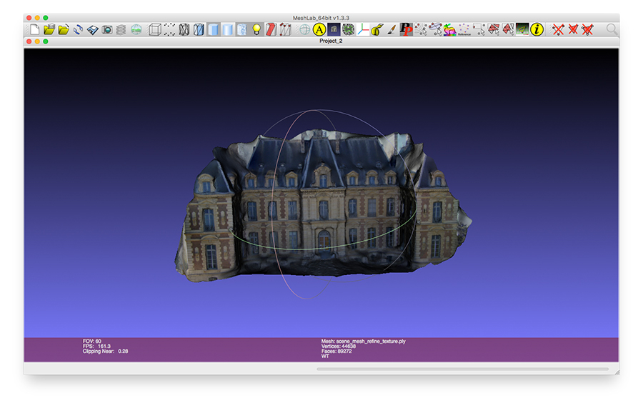 You should now have a reconstructed model at /tmp/example/omvs folder. Use meshlab or something similar to open it. The end result should look something like this: