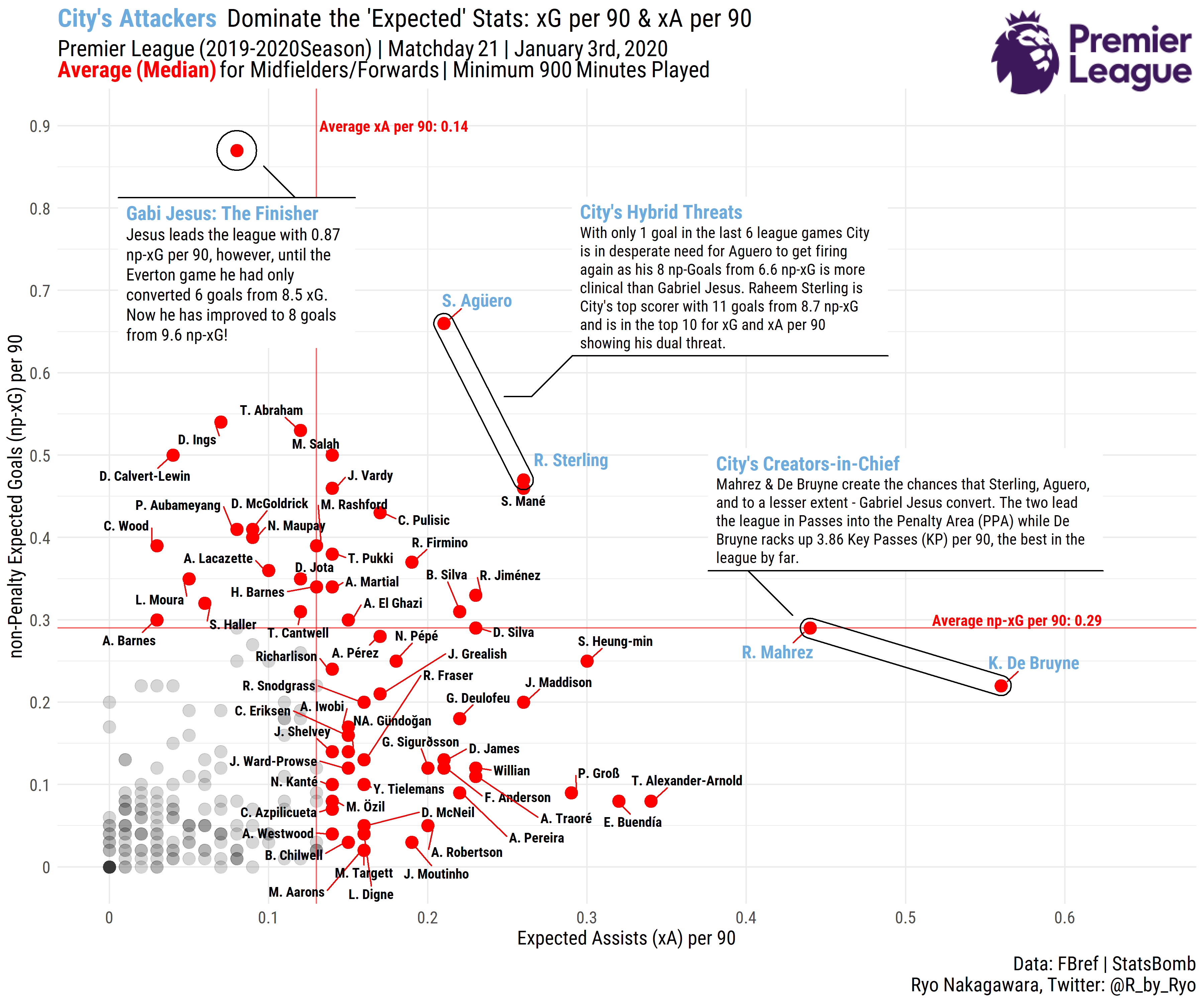 - Visualizing the Premier League So Far, Part 1: Overview with xPts Tables and xG Plots
