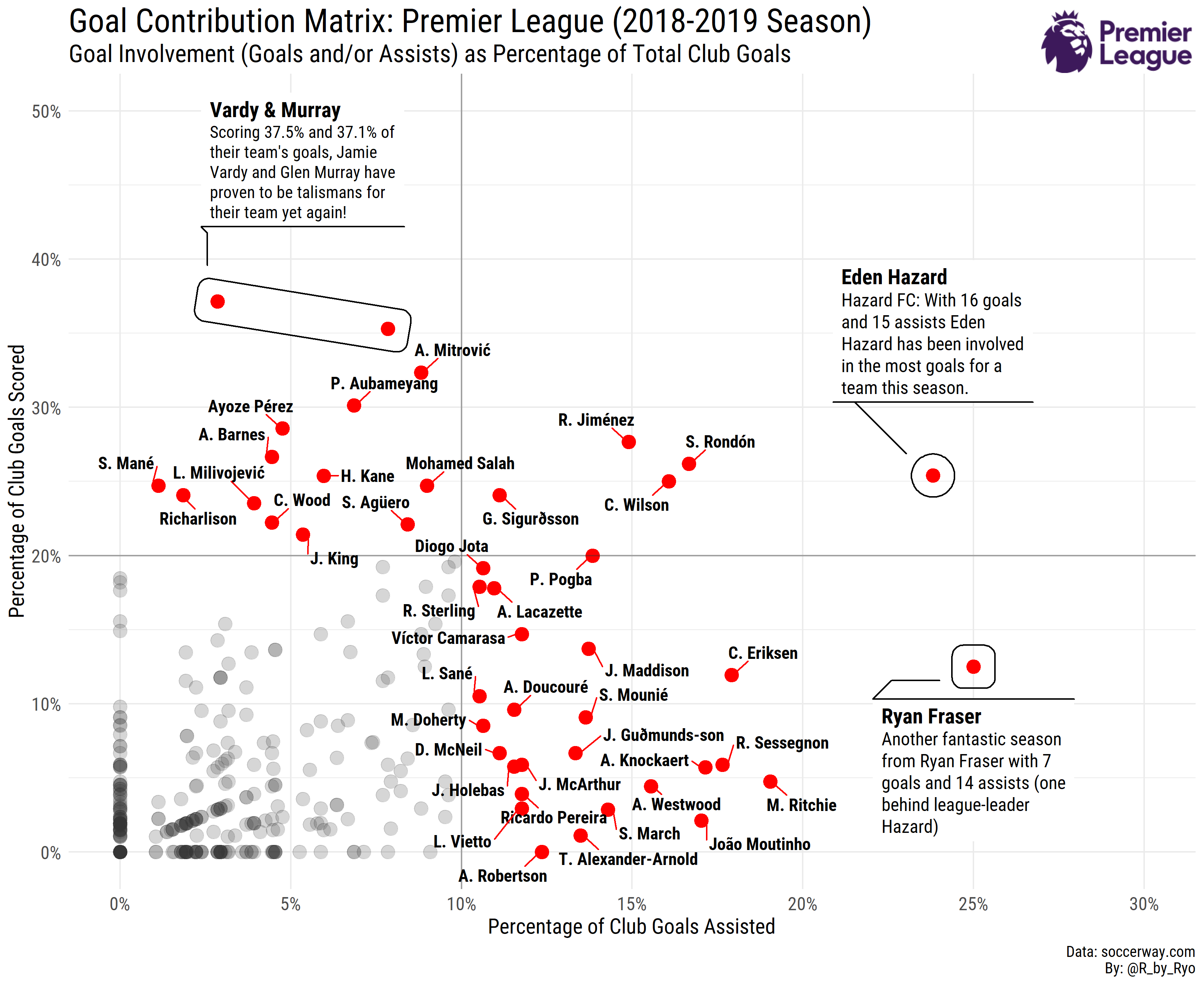 - Goal-Contribution Matrix (Premier League 2018-2019 Season): Gist