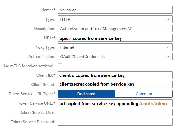 - Repeat steps 4 to 6 for the xsuaa-svc (xsuaa) item