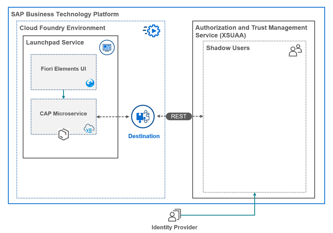 This sample code aims to help SAP developers (customers or partners) to develop secure applications on SAP Business Technology Platform using the Authorization and Trust Management Service (XSUAA) APIs from Cloud Foundry. The code is developed using the SAP Cloud Application Programming Model (CAP) NodeJS framework and implements a microservice to manage business applications' users and their respective authorizations with a simple SAP Fiori Elements UI for testing.